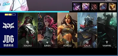 JDG选用:Xiaoxu铁男、Junjia蔚、HongQ维克托、GALA轮子妈、Vampire列娜塔