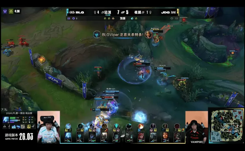 23分钟,小龙团JDG未能拿到小龙,BLG完成0换2